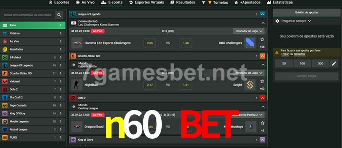 A aposta n60 bet oferece aos jogadores a experiência mais conveniente de apostas em eSports!